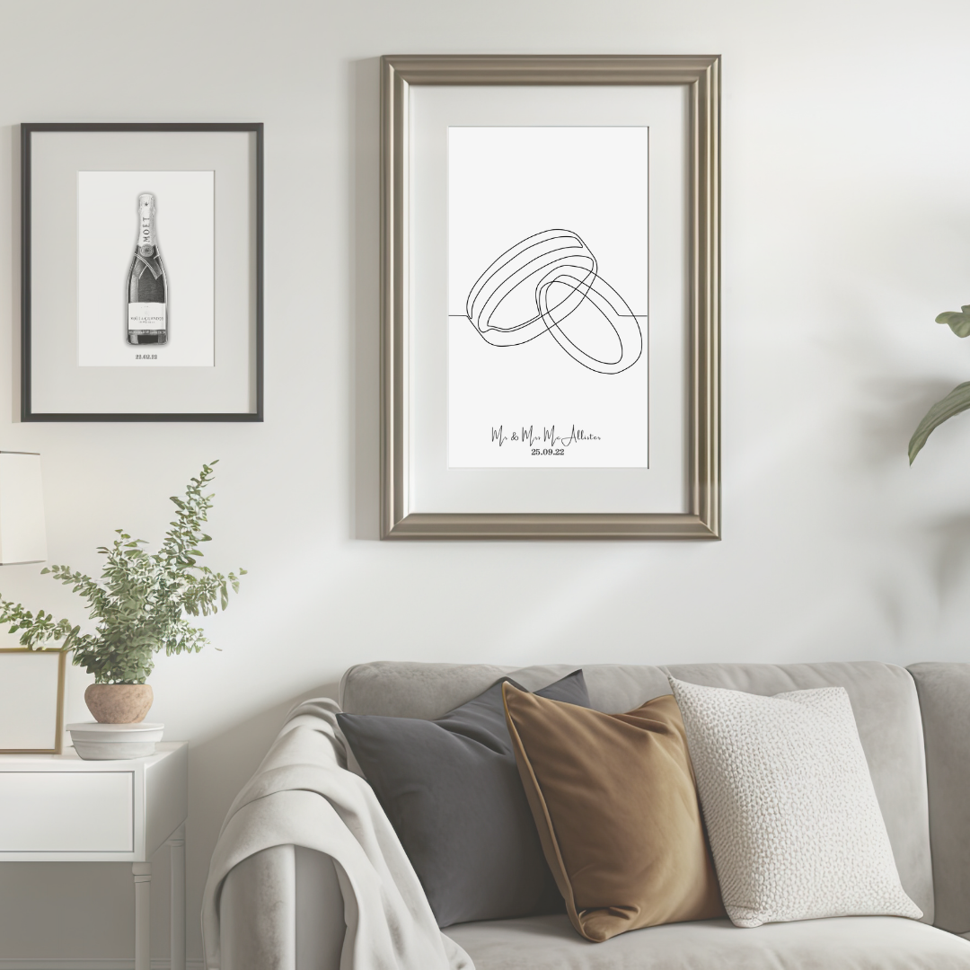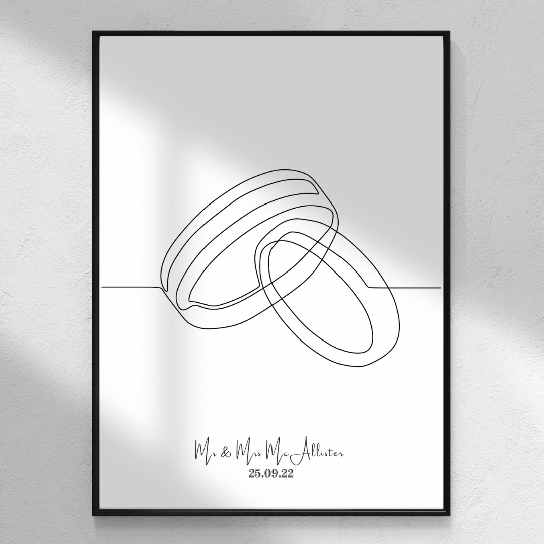 Our Infinity wedding rings print features two interlocking rings, symbolising the unbreakable bond between you and your partner. This timeless design is printed on high-quality photo card, ensuring that it will be a cherished keepsake for years to come. Plus, our team of experts can personalise your print with your names, wedding date, and any other details you wish to include.